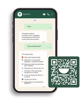 IWA è il tuo assistente personale su WhatsApp e ti permette di gestire il tempo e il prodotto della tua sottoscrizione al caffè. Puoi anticipare o posticipare il tuo prossimo ordine, modificare i caffè, aggiungere prodotti occasionali con uno sconto del 25% e risolvere dubbi o problemi tecnici con l’aiuto dell’intelligenza artificiale, tra molte altre cose.